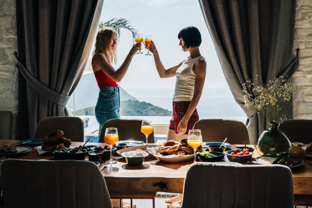The perfect dining experience often hinges on more than just the food on the plate; it is defined by the moment, the company, and the environment. The image of two women toasting by an expansive window overlooking the sea perfectly encapsulates the appeal of a destination restaurant experience. This type of dining capitalizes on breathtaking views and an atmosphere of leisurely celebration, making every meal feel like a vacation in itself. It is a powerful illustration of how ambiance transforms simple dining into a cherished memory.